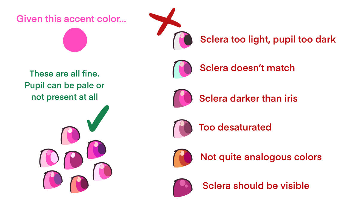 - Sclera and teeth are often a paler shade of the accent color, or the same if the accent is already pale